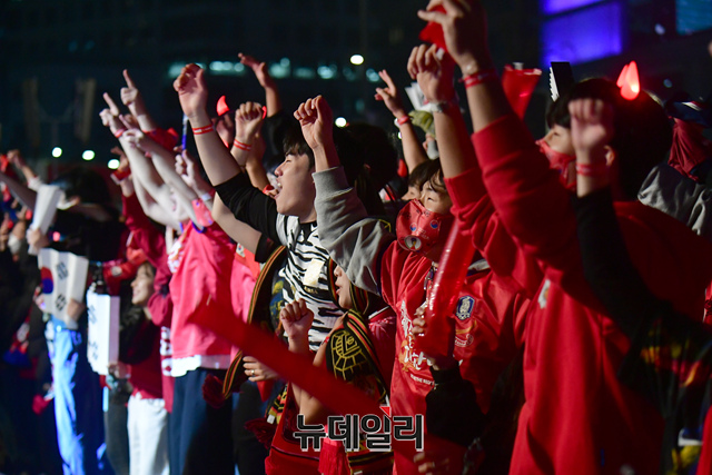 [포토] 광화문 거리응원 '붉은 악마 열띤 응원'