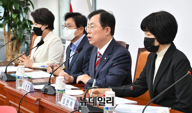이만희 국민의힘 이태원 사고조사 및 안전대책 특별위원장이 25일 오전 국회에서 열린 이태원 사고조사 및 안전대책 특별위원회 회의에서 모두발언을 하고 있다.