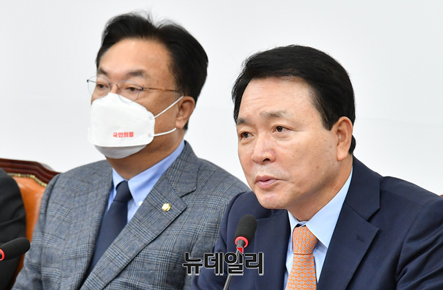 성일종 국민의힘 정책위의장이 28일 국회에서 열린 비상대책위원회의에서 모두발언을 하고 있다.