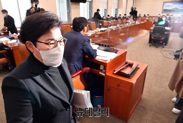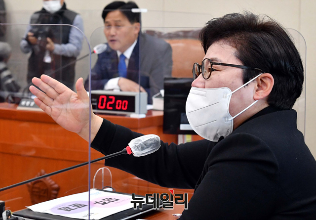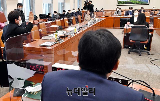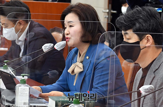 임이자 국민의힘 의원이 30일 오전 국회에서 열린 환경노동위원회 고용노동법안심사소위원회에서 이수진 더불어민주당 의원과 언쟁을 벌이고 있다.