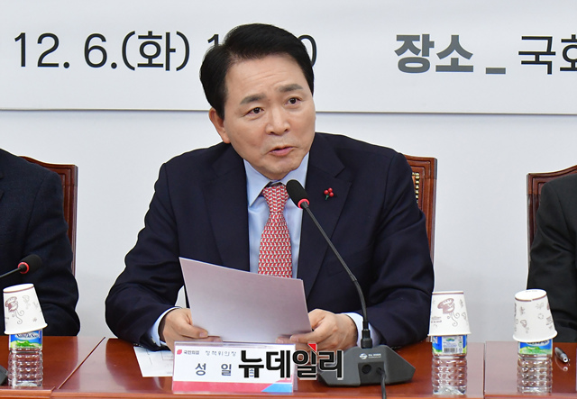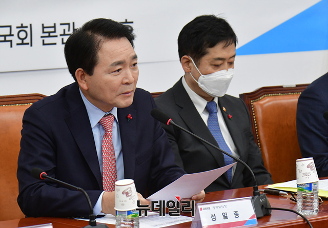 성일종 국민의힘 정책위의장이 6일 국회에서 열린 서민 취약계층 금융부담 완화대책 당정협의회에서 모두발언을 하고 있다.