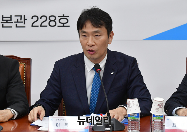 이복현 금융감독원장이 6일 국회에서 열린 서민 취약계층 금융부담 완화대책 당정협의회에서 모두발언을 하고 있다.