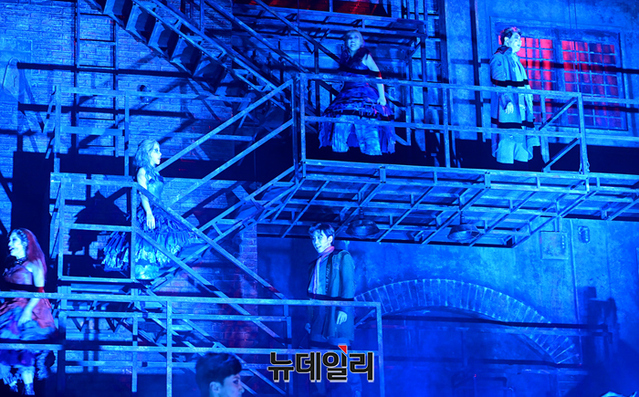 뮤지컬 '스위니토드' 배우들이 6일 오후 서울 송파구 샤롯데씨어터에서 열린 프레스콜에서 하이라이트 장면을 시연하고 있다.