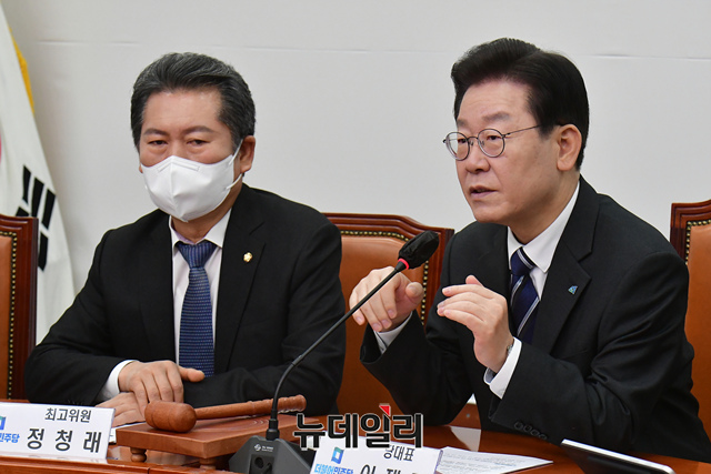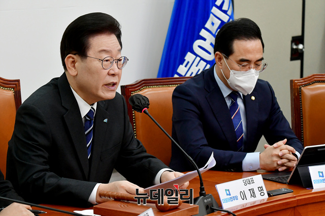 이재명 더불어민주당 대표가 7일 국회에서 열린 최고위원회의에서 모두발언을 하고 있다.
