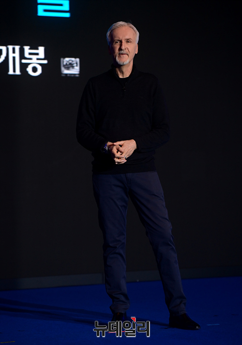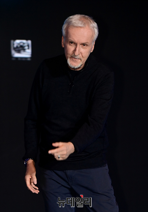 제임스 카메론 영화감독이 9일 오전 서울 여의도 콘래드호텔에서 열린 영화 '아바타:물의 길' 내한 기자간담회에서 포토타임을 갖고 있다. 14일 개봉.