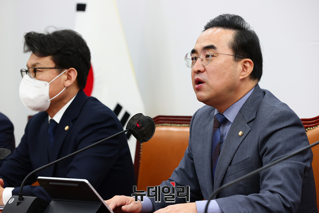 박홍근 더불어민주당 원내대표가 13일 오전 국회에서 열린 원내대책회의에 참석해 모두발언을 하고 있다.