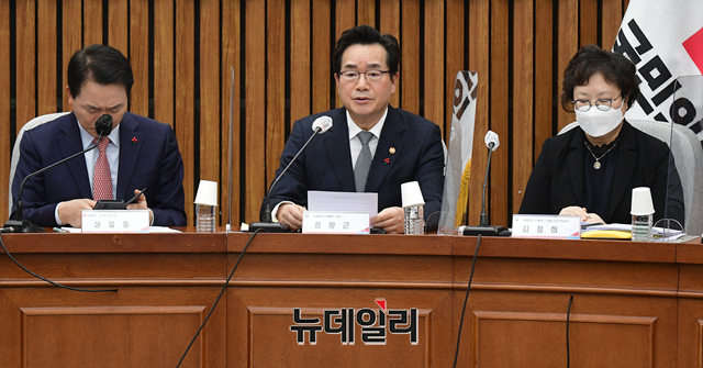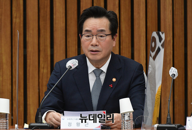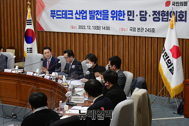 정황근 농림축산식품부 장관이 13일 오후 국회에서 열린 푸드테크 산업 발전을 위한 민·당·정협의회에서 발언을 하고 있다.