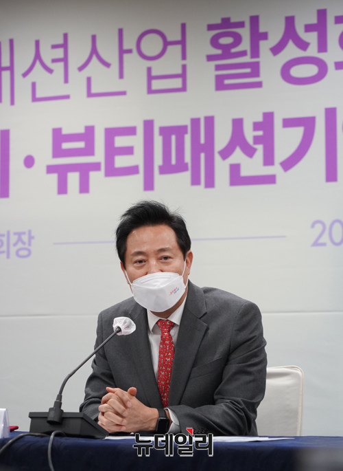 오세훈 서울시장이 19일 오후 서울시청에서 열린 뷰티패션산업 활성화를 위한 서울시· 뷰티패션기업 간담회에서 참석자들과 기념촬영을 하고 있다. (사진=서울시)
