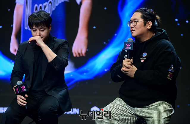 최용호 갤럭시코퍼레이션 대표가 19일 오후 서울 강남구 일지아트홀에서 열린 고 김환성 아바타 기자간담회에서 인사말을 하고 있다.
