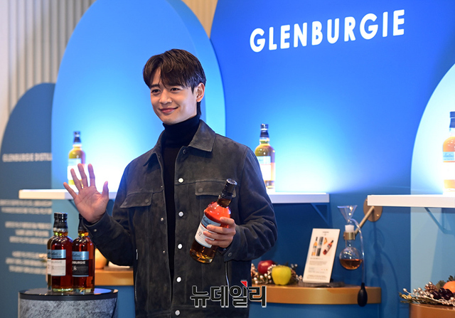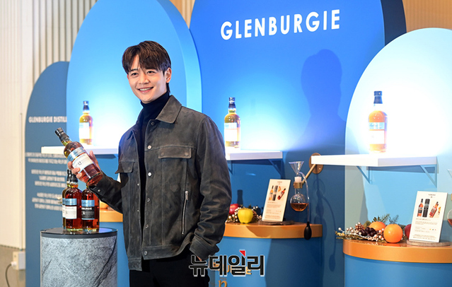 샤이니 민호가 21일 오전 서울 용산 고메이494 한남에서 운영중인 발렌타인 싱글몰트 글렌버기 스테이션에 방문해 포즈를 취하고 있다.