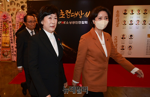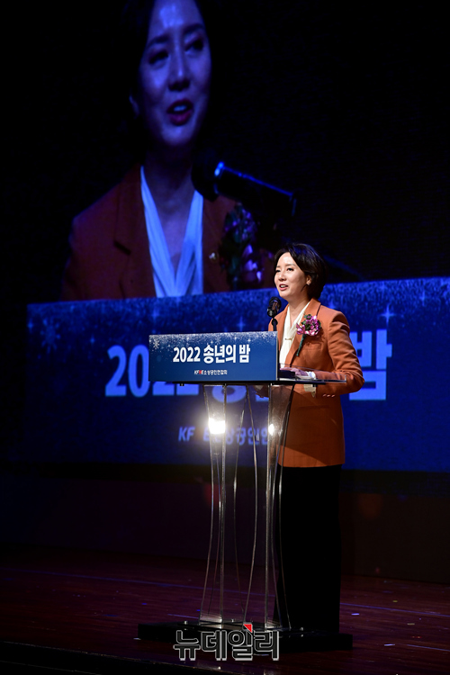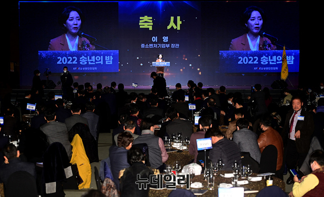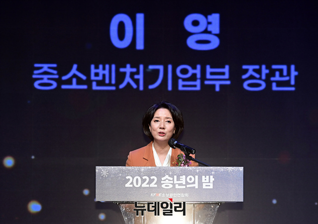 이영 중소벤처기업부 장관이 22일 오후 서울 여의도 63빌딩에서 열린 2022 소상공인연합회 송년의밤 행사에 참석해 인사말을 하고 있다.
