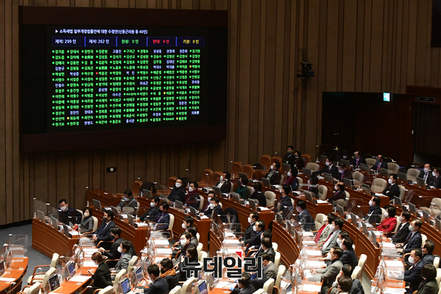 소득세법 일부개정법률안 수정안이 23일 오후 국회 본회의를 통과하고 있다.