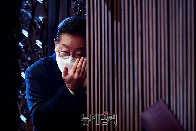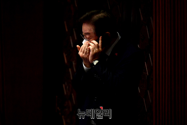 이재명 더불어민주당 대표가 24일 오전 국회에서 열린 본회의에서 전화를 받고 있다.