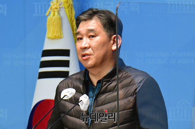 최승재 국민의힘 의원이 26일 오전 국회 소통관에서 열린 추가연장근로 제한 철폐 촉구 기자회견에서 발언하고 있다.