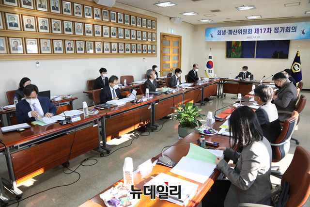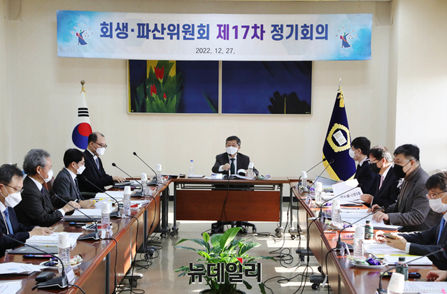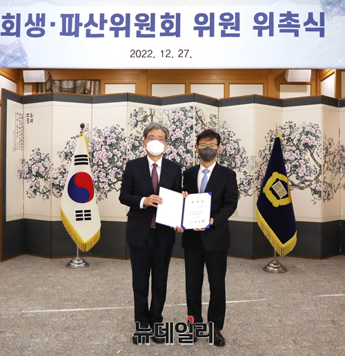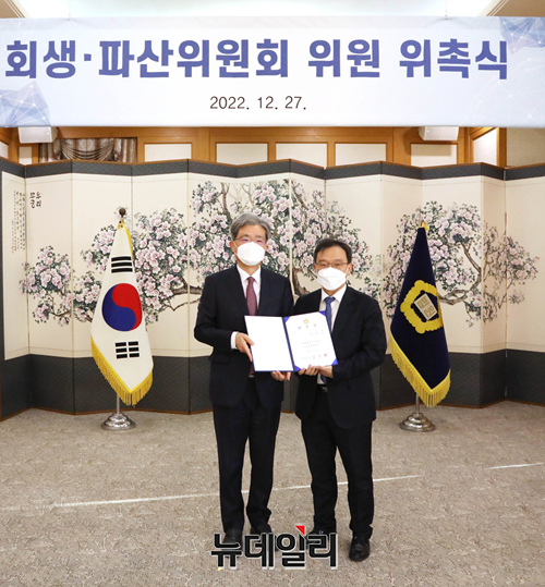 오수근 회생·파산위원회 위원장을 비롯한 위원들이 27일 오전 서울 서초구 대법원에서 열린 제17차 정기회의에서 위촉위원들과 기념촬영을 하고 있다. (사진=공동취재단)