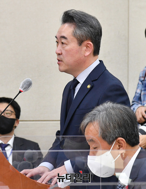 윤희근 경찰청장이 27일 국회에서 열린 용산 이태원 참사 진상규명과 재발방지를 위한 국정조사특별위원회 전체회의에서 업무보고를 하고 있다.