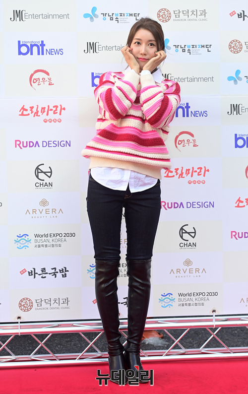 가수 두리가 28일 오후 서울 강남구청에서 열린 '2022 사랑의 김장 담그기' 봉사활동에 앞서 포토타임을 갖고 있다.