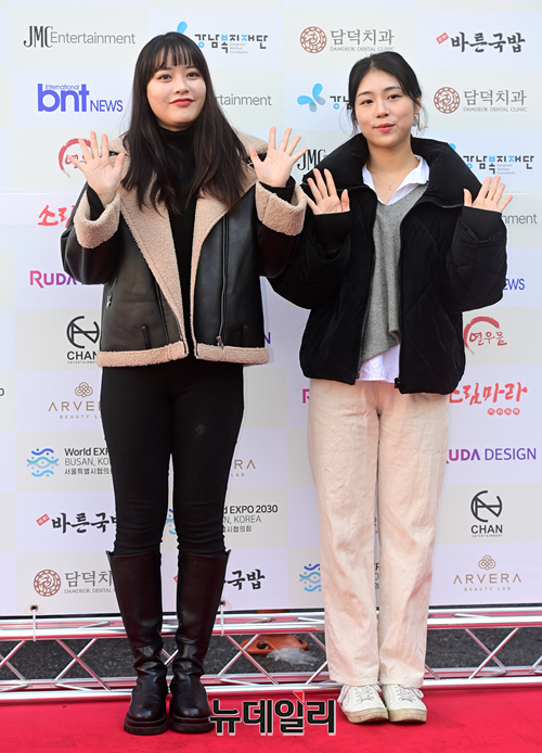 소녀주의보 지성과 슬비가 28일 오후 서울 강남구청에서 열린 '2022 사랑의 김장 담그기' 봉사활동에 앞서 포토타임을 갖고 있다.