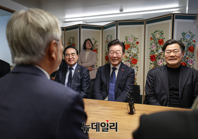 [포토] 민주당 인사 만난 문재인 전 대통령