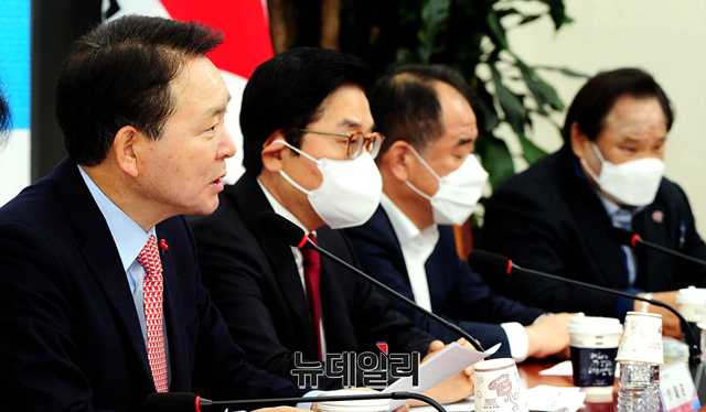 성일종 국민의힘 정책위의장이 3일 오전 국회에서 열린 설 민생안정 대책 관련 민·당·정 협의회에서 모두발언을 하고 있다.