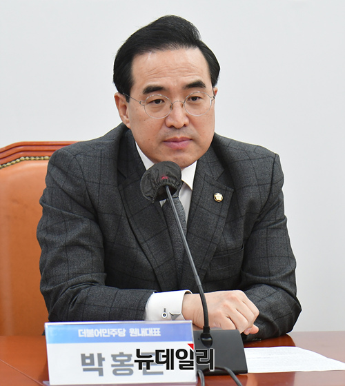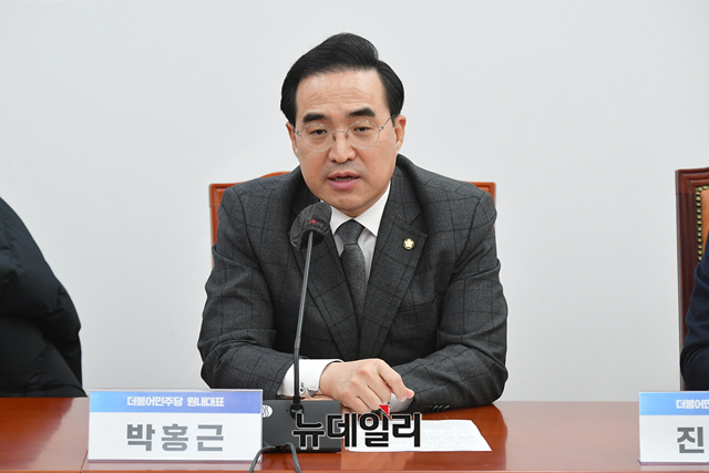 박홍근 더불어민주당 원내대표가 3일 오전 국회 원내대표실에서 열린 이태원 참사 유가족협의회 간담회에 참석해 발언을 하고 있다.