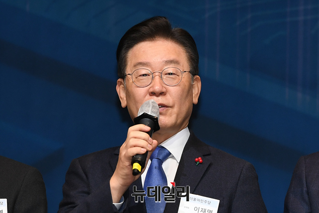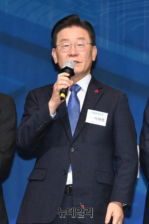 이재명 더불어민주당 대표가 3일 오전 인천 연수구 송도컨벤시아에서 열린 인천상공회의소 신년인사회에서 인사말을 하고 있다.