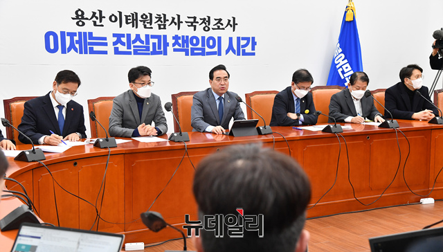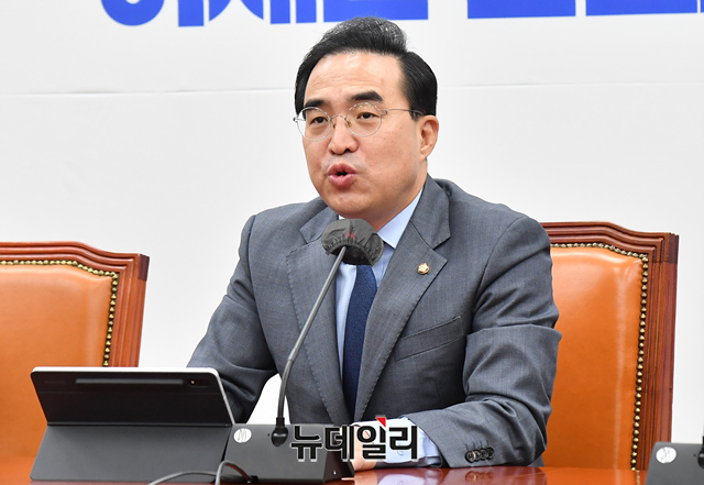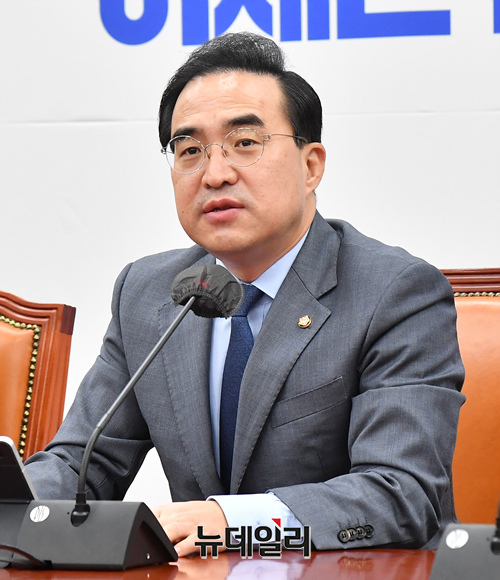 박홍근 더불어민주당 원내대표가 5일 오전 국회에서 열린 정책조정회의에 참석해 모두발언을 하고 있다.