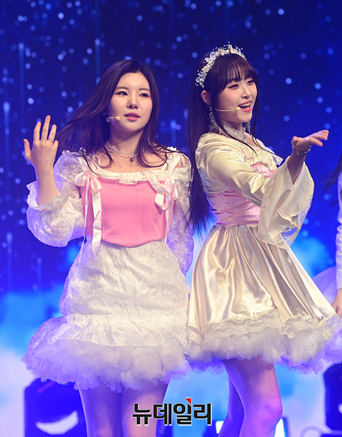 걸그룹 아일리원(ILY:1)이 5일 오후 서울 강남구 일지아트홀에서 열린 첫 번째 미니앨범 쇼케이스에서 타이틀곡 무대를 선보이고 있다.