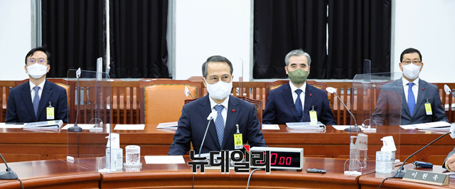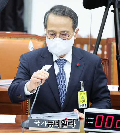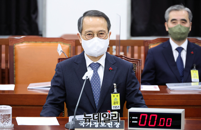 김규현 국정원장이 5일 국회에서 열린 정보위 전체회의에 참석해 자리에 앉아 있다.