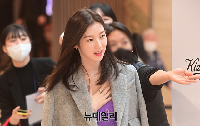 오마이걸 아린이 6일 오전 서울 중구 롯데백화점 본점에서 열린 키엘 울트라 훼이셜 크림 팝업스토어에 입장하고 있다. 키엘 팝업은 6일부터 15일까지 본점 지하1층에서 만날 수 있다.