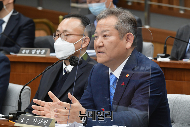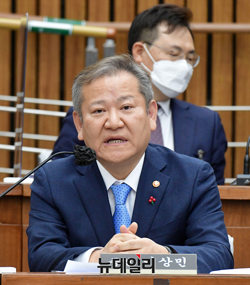 이상민 행정안전부 장관이 6일 오전 국회에서 열린 용산 이태원 참사 진상규명과 재발방지를 위한 국정조사 특별위원회 2차 청문회에서 의원들의 질문에 답하고 있다.