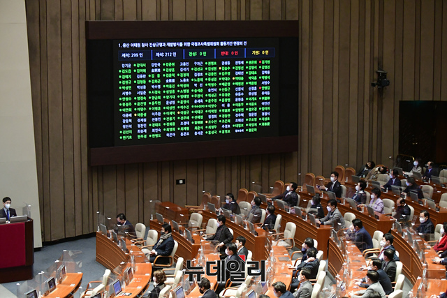 용산 이태원 참사 진상규명과 재발방지를 위한 국정조사특별위원회 활동기간 연장안이 6일 오후 국회에서 열린 본회의에서 가결되고 있다.