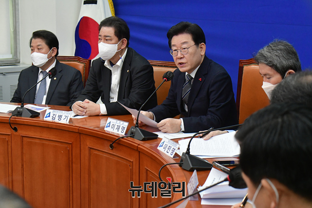 이재명 더불어민주당 대표가 6일 오후 국회에서 열린 평화안보대책위원회 긴급회의에서 발언하고 있다.