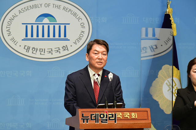 안철수 국민의힘 의원이 9일 오전 국회 소통관에서 당 대표 출마선언을 하고 있다.