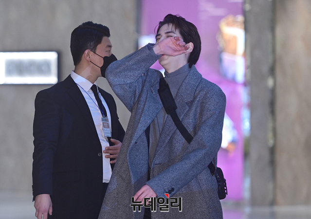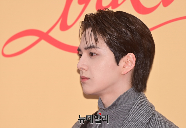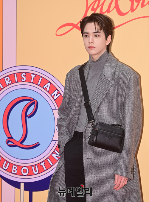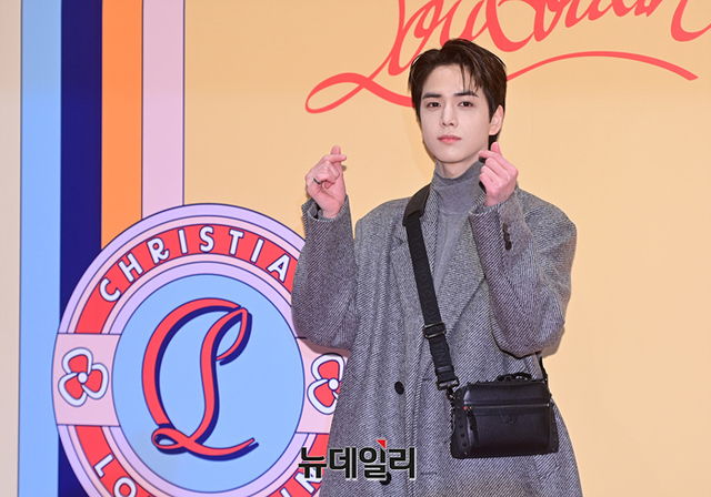 더보이즈 영훈이 10일 오전 서울 여의도 더현대에서 열린 크리스찬 루부탱 팝업행사에서 포즈를 취하고 있다.