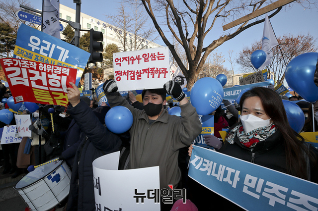 [포토] 검찰 출석 앞두고 결집한 이재명 지지자들