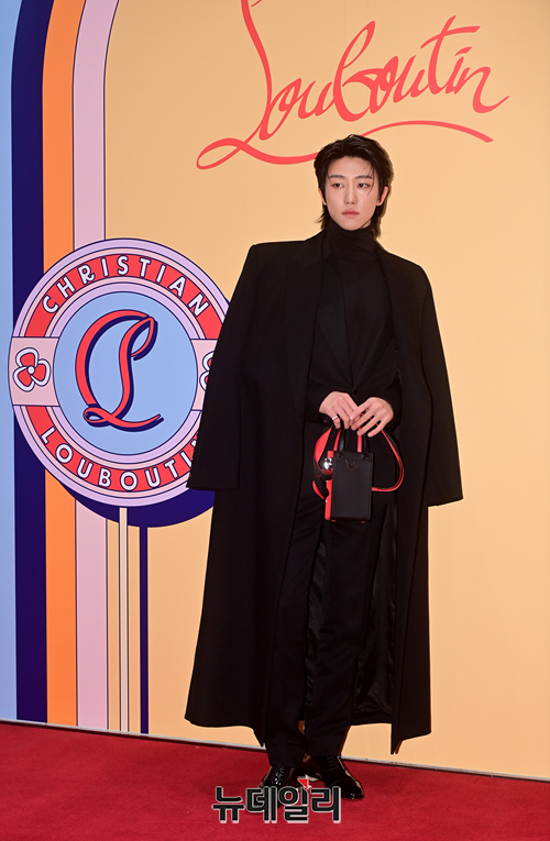 세븐틴 디에잇이 10일 오전 서울 여의도 더현대에서 열린 크리스찬 루부탱 팝업행사에서 포즈를 취하고 있다.