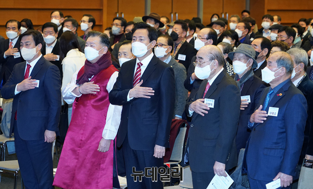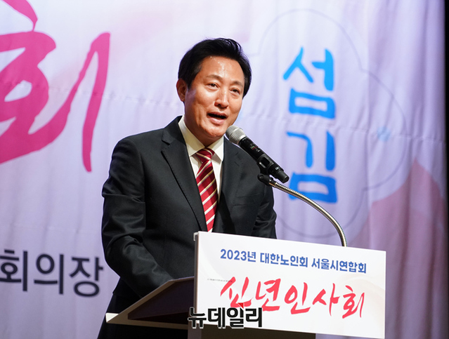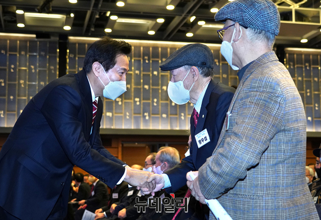 오세훈 서울시장이 9일 서울 중구 대한상공회의소 국제회의장에서 열린 2023년 대한노인회 서울시연합회 신년 인사회에서 인사말에 앞서 큰절을 올리고 있다. (사진=서울시)