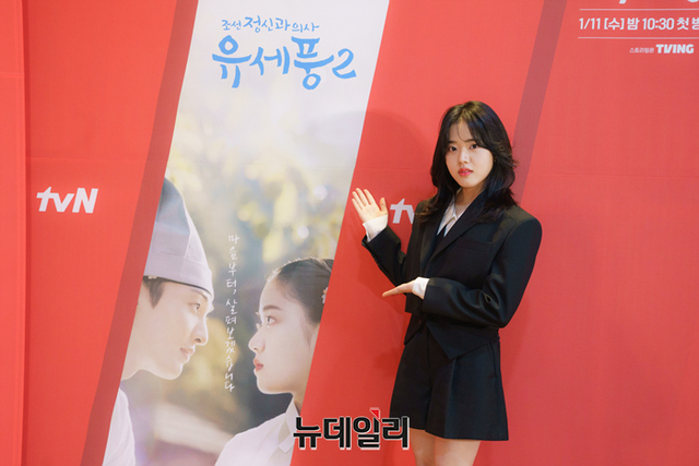 배우 김향기가 10일 온라인으로 열린 tvN 수목드라마 '조선 정신과 의사 유세풍2' 제작발표회에서 포즈를 취하고 있다.