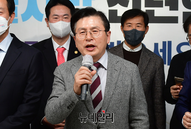 국민의힘 당권주자인 황교안 전 대표가 11일 오후 서울 여의도 중앙당사에서 열린 서울시당 신년인사회에서 건배사를 하고 있다.