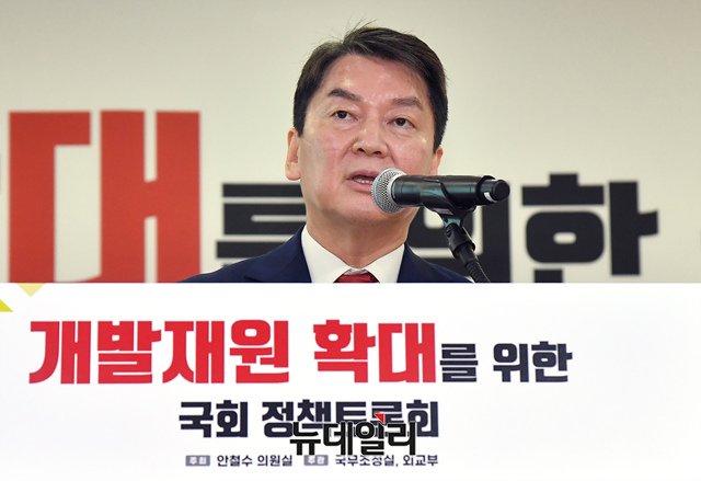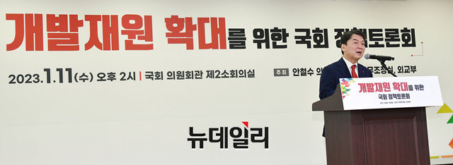 안철수 국민의힘 의원이 11일 오후 국회 의원회관에서 열린 개발재원 확대를 위한 정책토론회에 참석해 개회사를 하고 있다.