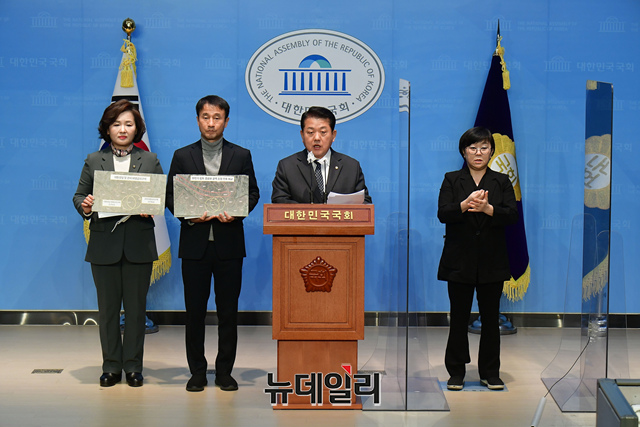 더불어민주당 대통령실 관련 진상규명단 소속 이수진, 한병도, 김병주 의원이 13일 오전 국회 소통관에서 북한 무인기 비행금지구역 침범 관련 기자회견을 하고 있다.