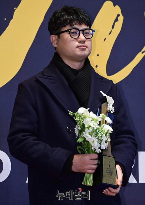 '바퀴 달린 집'을 연출한 김효연 PD가 17일 오후 서울 중구 신라호텔에서 열린 '2023 대한민국 퍼스트브랜드 대상' 포토월에서 포즈를 취하고 있다.