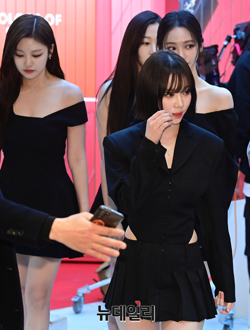 걸그룹 에스파가 18일 오전 서울 중구 롯데백화점 본점에서 열린 벨벳 플레이 그라운드 오픈 기념행사에서 포즈를 취하고 있다.