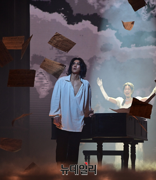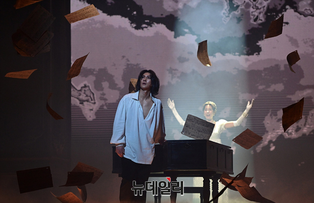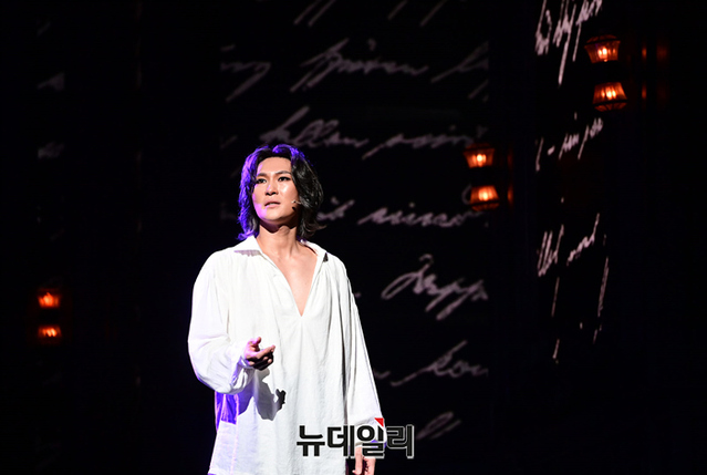 뮤지컬배우 박은태가 19일 오후 서울 서초구 예술의전당에서 열린 뮤지컬 '베토벤' 프레스콜에서 하이라이트 장면을 시연하고 있다. 베토벤은 3월 26일까지 예술의전당 오페라극장에서 공연된다.