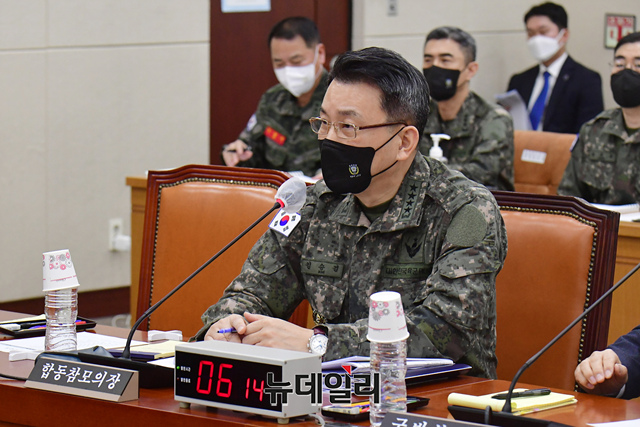 김승겸 합동참모의장이 26일 국회에서 열린 국회 국방위원회 전체회의 북한 무인기 침범에 대한 현안질의에 출석해 의원들의 질문에 답하고 있다.