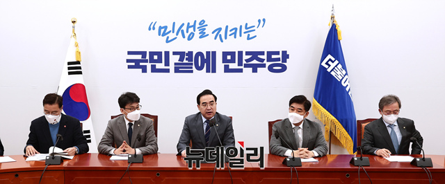 박홍근 더불어민주당 원내대표가 26일 오전 국회에서 열린 정책조정회의에서 모두발언을 하고 있다.
