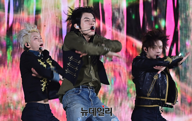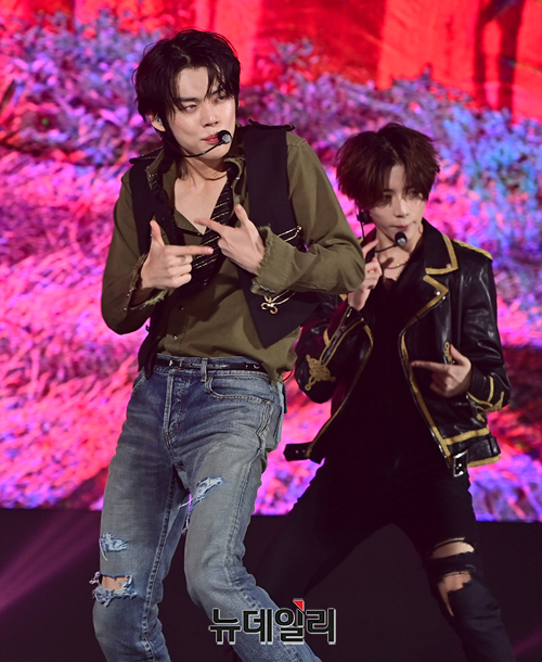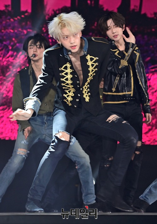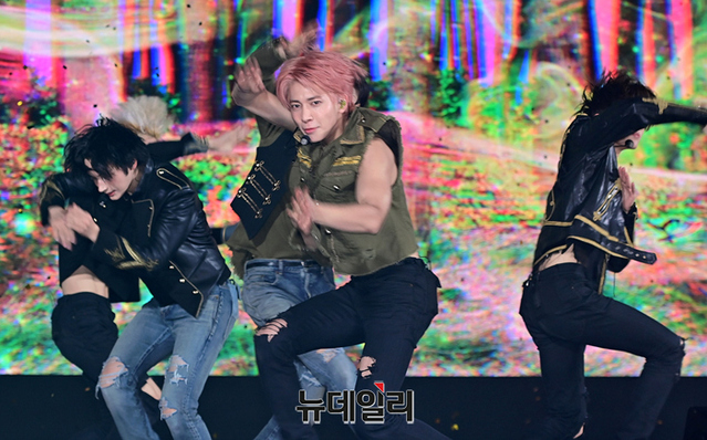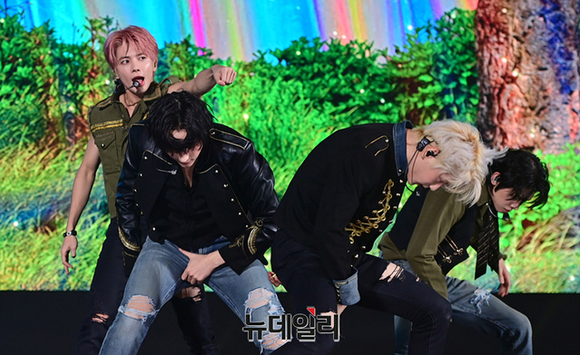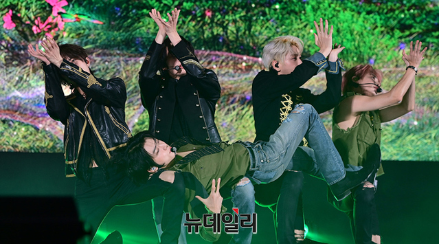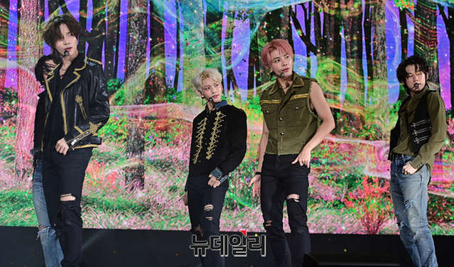 투모로우바이투게더(수빈, 연준, 범규, 태현, 휴닝카이)가 26일 오후 서울 강남구 코엑스 오디토리움에서 열린 다섯 번째 미니 앨범 '이름의 장: TEMPTATION(이름의 장: 템테이션)' 미디어 쇼케이스서 타이틀곡 무대를 선보이고 있다.타이틀곡 'Sugar Rush Ride(슈가 러쉬 라이드)'는 달콤하지만 치명적인 악마의 유혹에 빠져드는 소년의 모습을 담은 얼터너티브 팝 댄스 장르의 곡이다.총 5개 트랙이 수록된 이번 앨범은 27일 오후 공개된다.