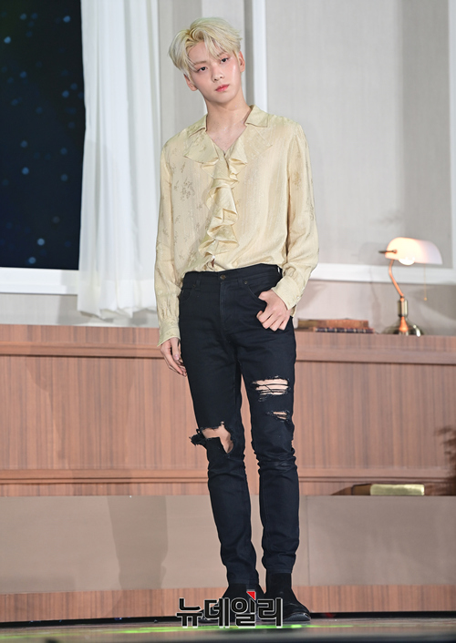 투모로우바이투게더 리더 수빈이 26일 오후 서울 강남구 코엑스 오디토리움에서 열린 다섯 번째 미니 앨범 '이름의 장: TEMPTATION(이름의 장: 템테이션)' 미디어 쇼케이스에서 포토타임을 갖고 있다. 이번 앨범은 27일 오후 공개된다.