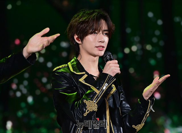 투모로우바이투게더 범규가 26일 오후 서울 강남구 코엑스 오디토리움에서 열린 다섯 번째 미니 앨범 '이름의 장: TEMPTATION(이름의 장: 템테이션)' 미디어 쇼케이스에서 포토타임을 갖고 있다. 이번 앨범은 27일 오후 공개된다.